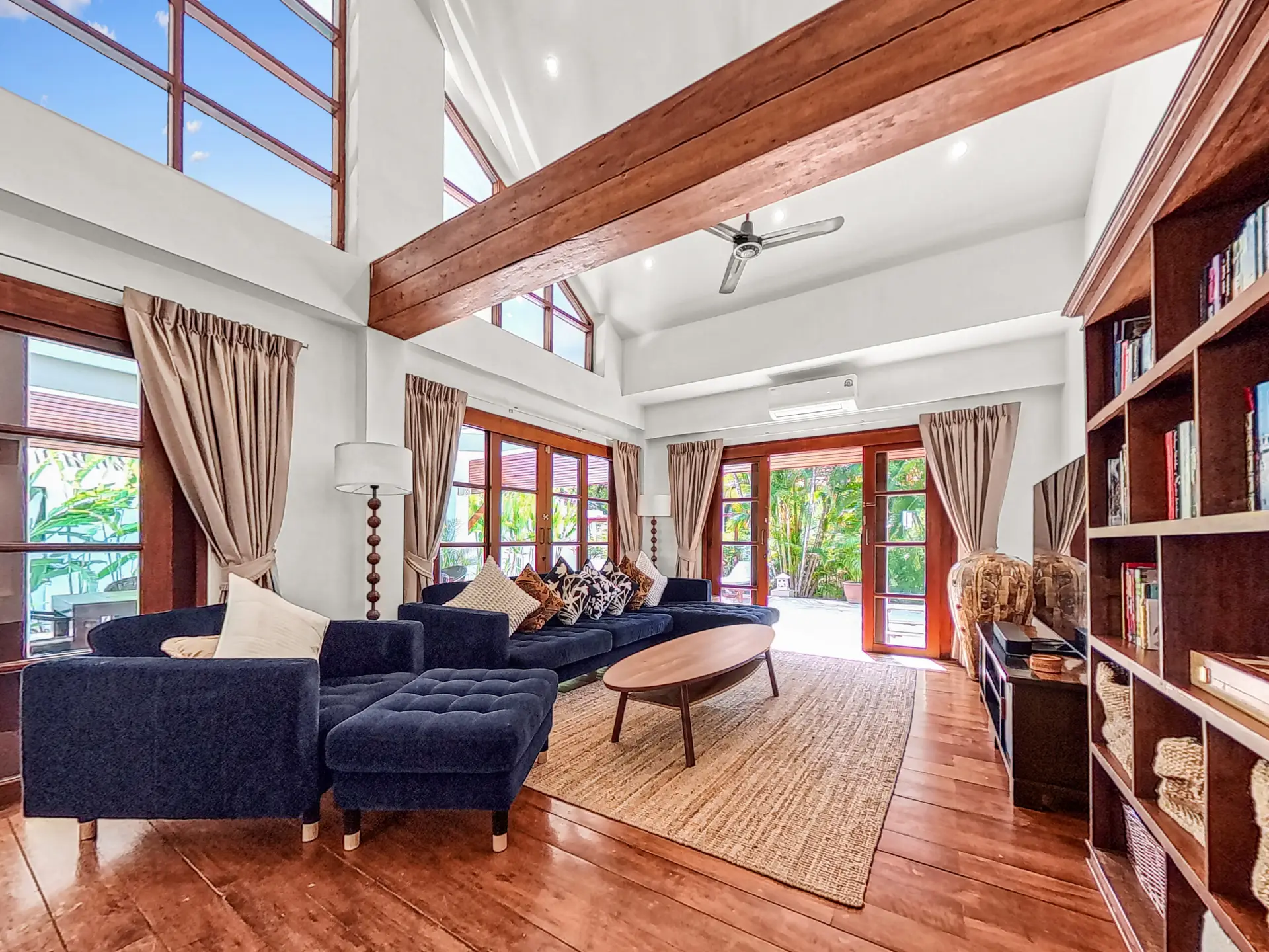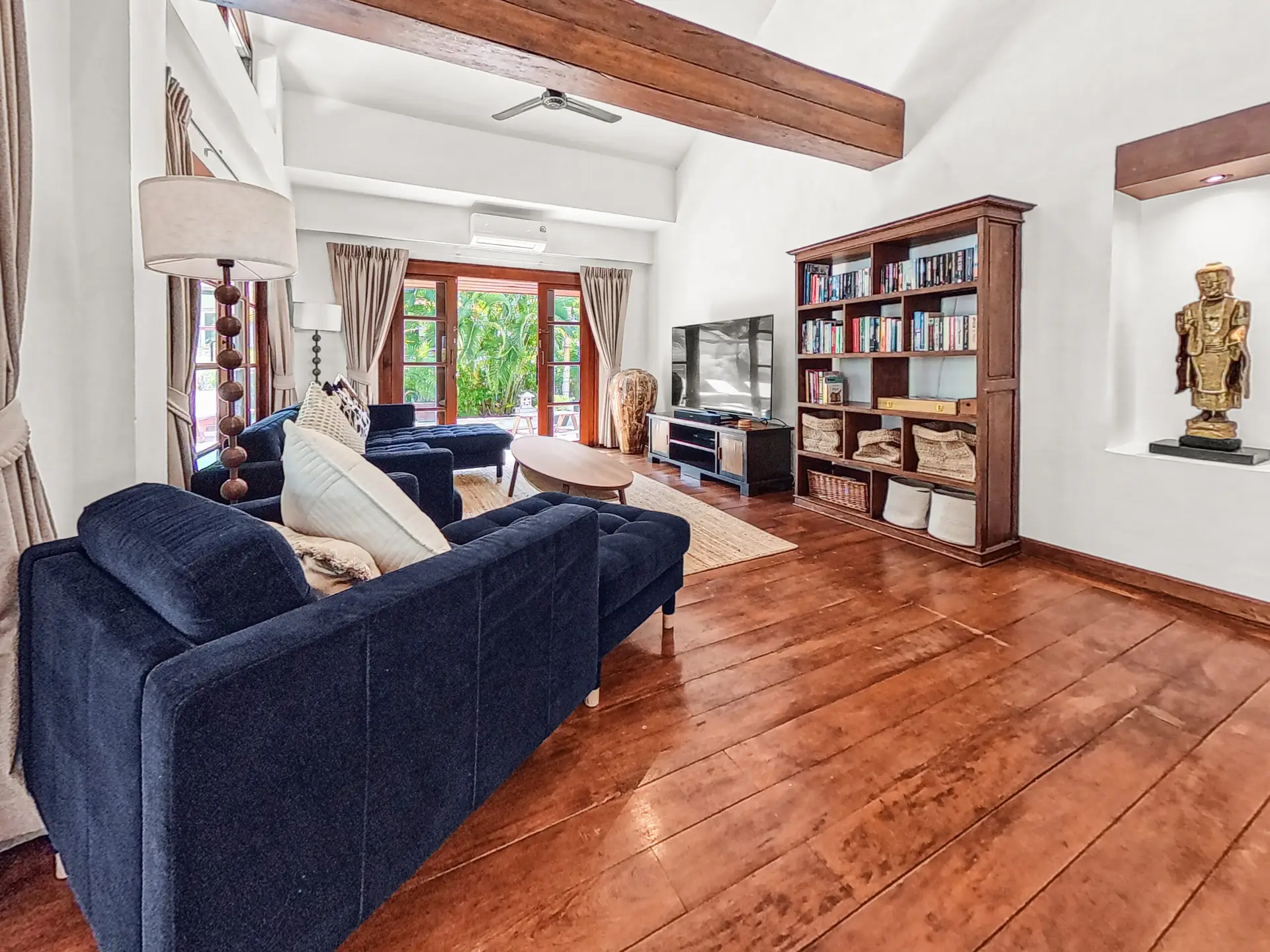 Comfortable sofa and armchair seating, 65” Smart TV, Sonos sound system, Ceiling fans, 2 x Air conditioning units