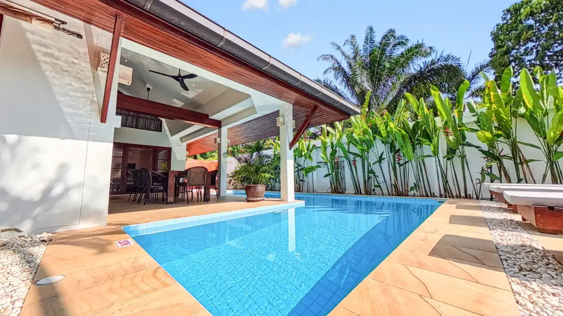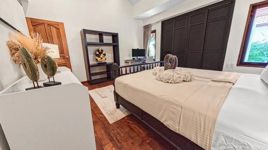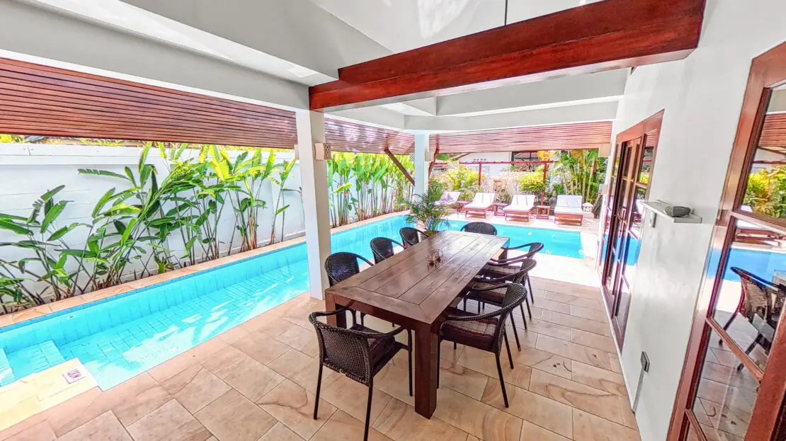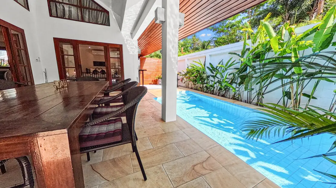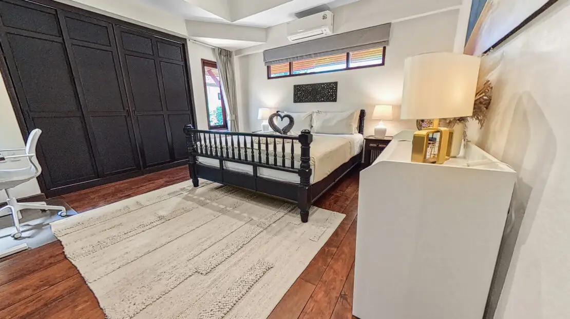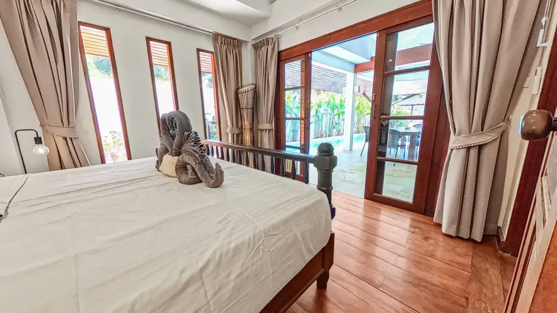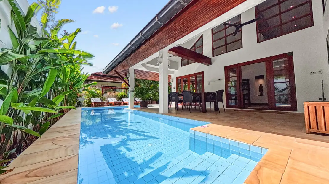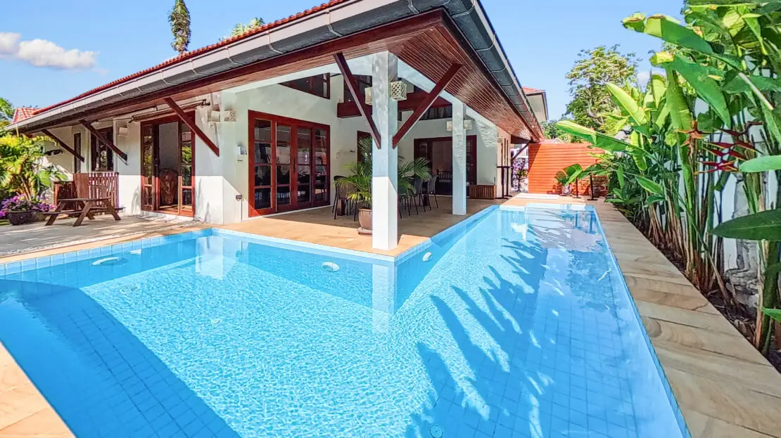 Discover Malee Beach C1 – a spacious and private villa with high ceilings, a tropical garden, and a large L-shaped pool. Located just 100 meters from Long Beach, you can reach the sea and enjoy the island lifestyle within minutes. With high-speed fibre internet and two fully equipped work areas, the villa is also well suited for guests working remotely.
