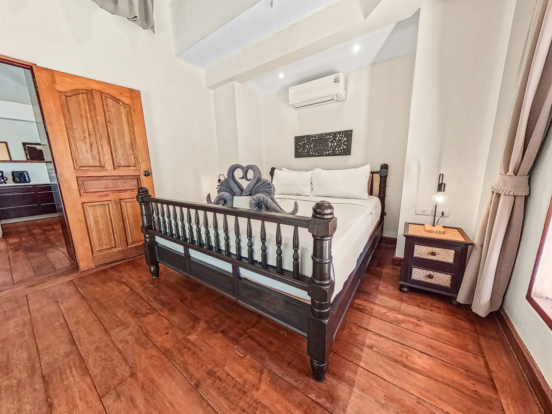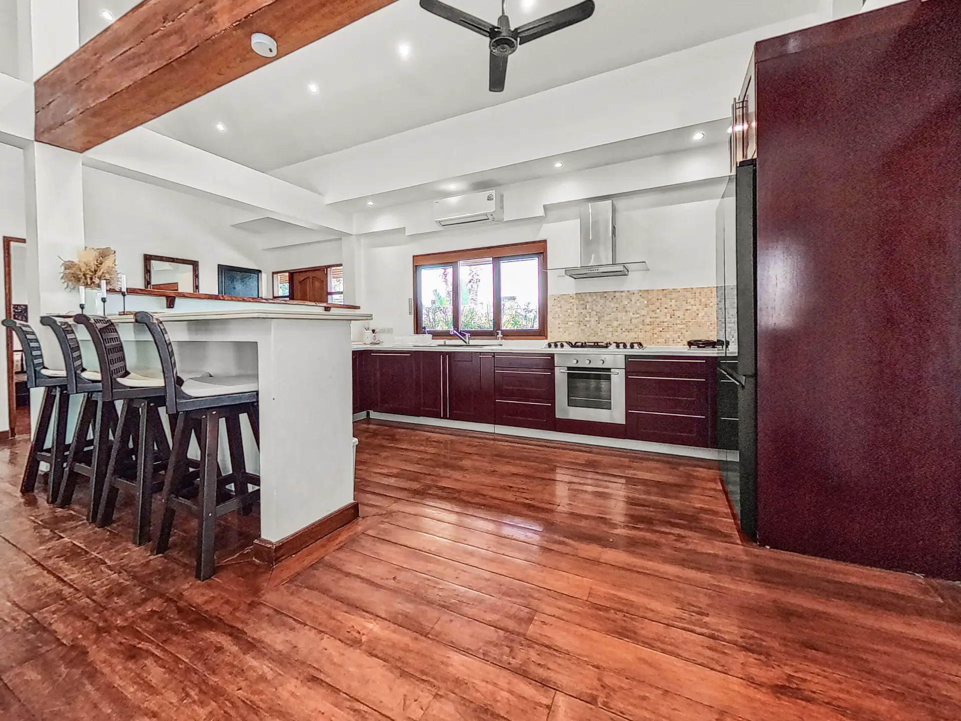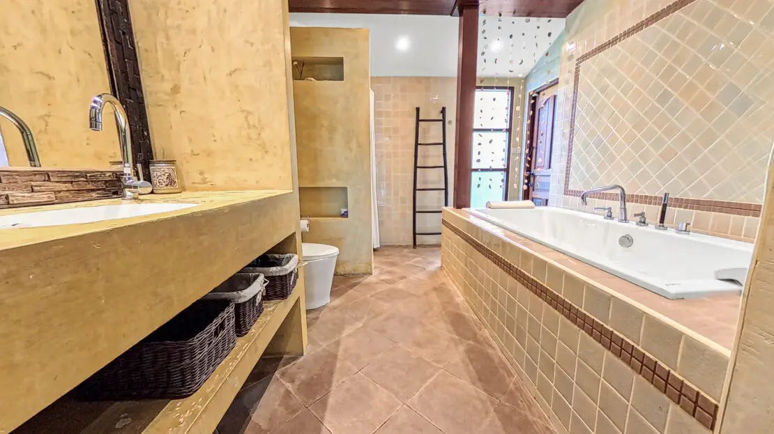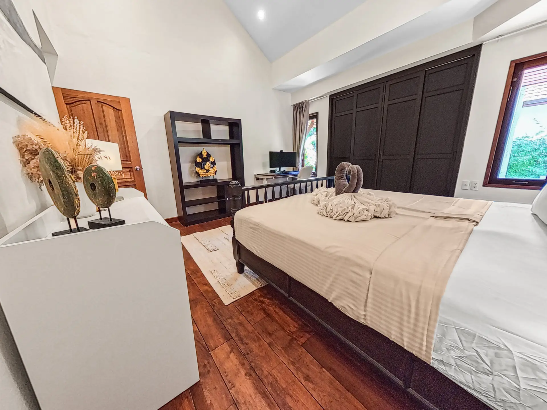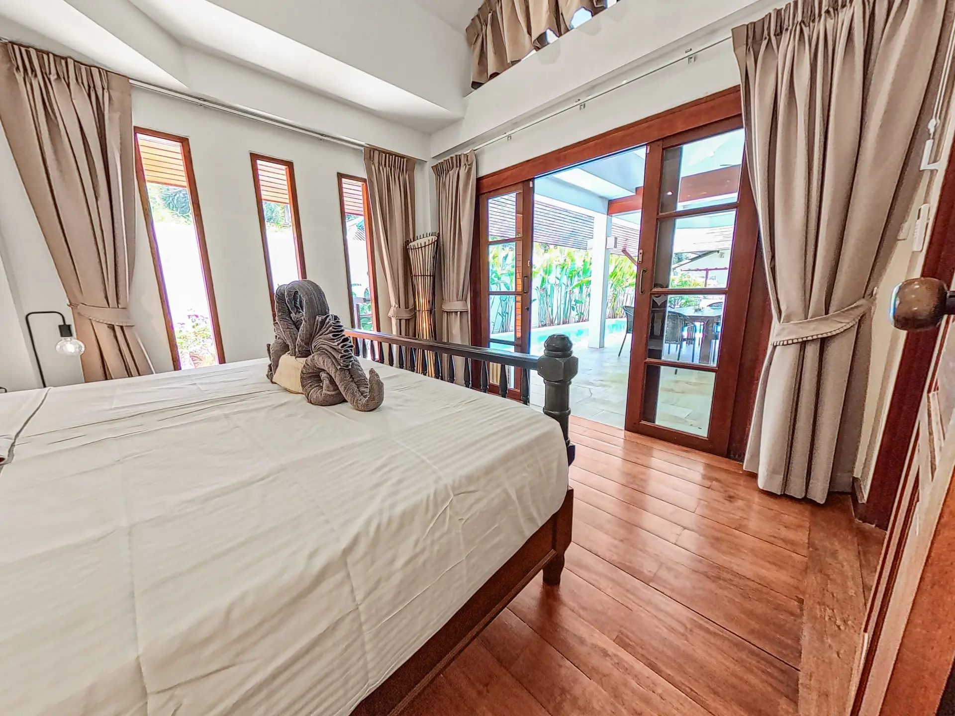 Discover Malee Beach C1 – a spacious and private villa with high ceilings, a tropical garden, and a large L-shaped pool. Located just 100 meters from Long Beach, you can reach the sea and enjoy the island lifestyle within minutes. With high-speed fibre internet and two fully equipped work areas, the villa is also well suited for guests working remotely.