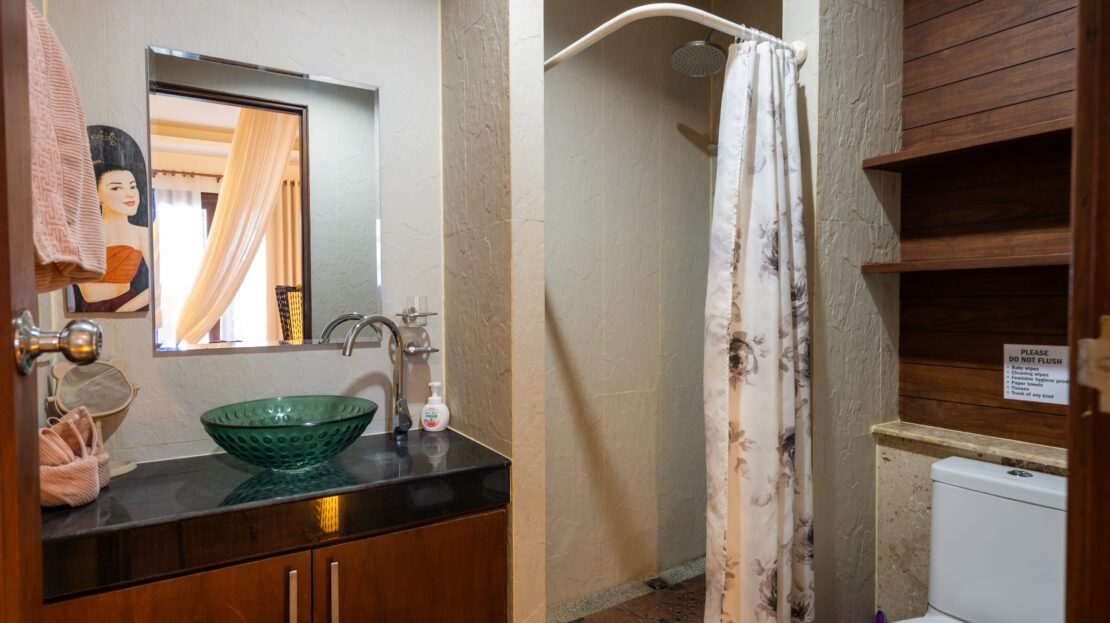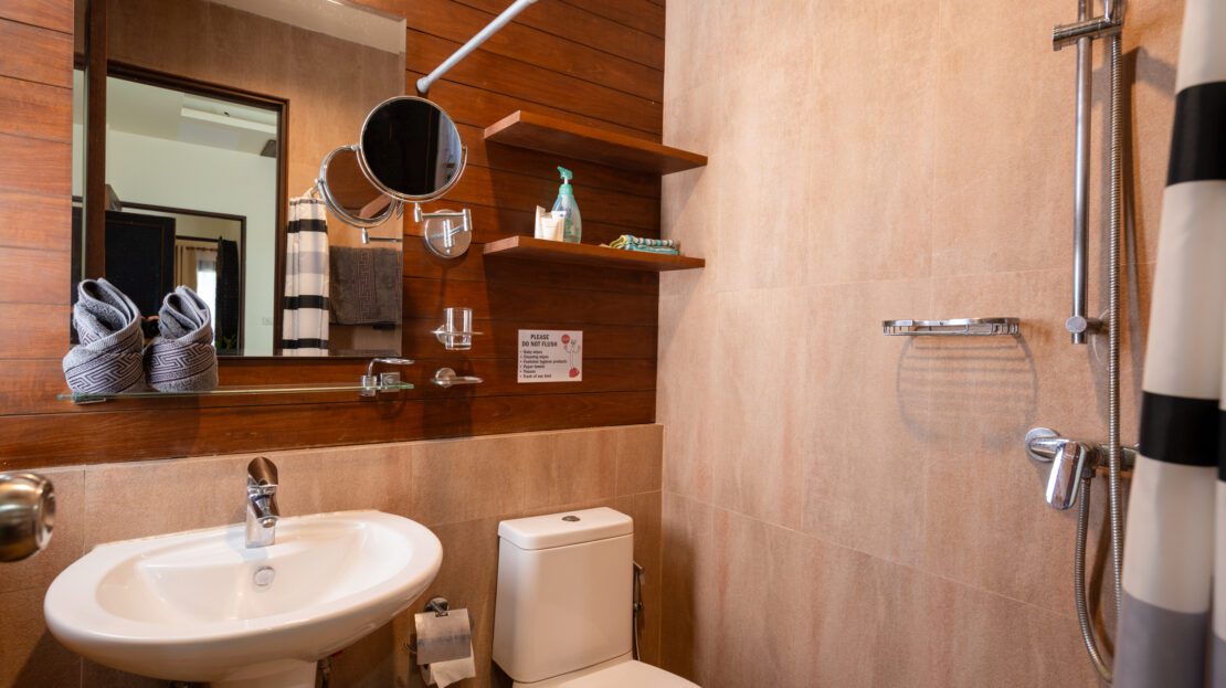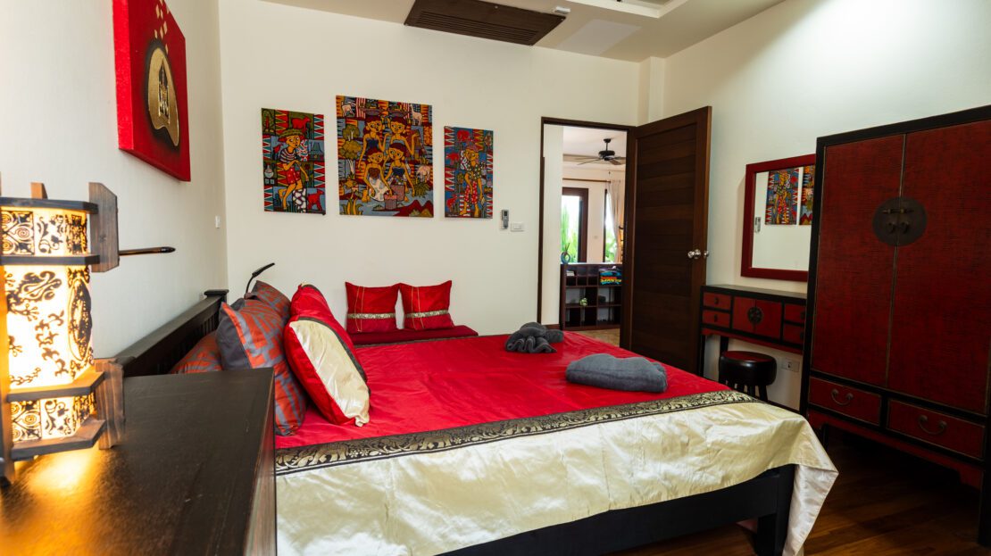 | Bedroom | Both bedrooms are air-conditioned with plenty of cupboard space and ensuite bathroom. Master bedroom (Queen, 150cm): 16 sqm, air conditioned, direct pool access Bedroom 2 (Queen, 150cm): 16 sqm, air conditioned |