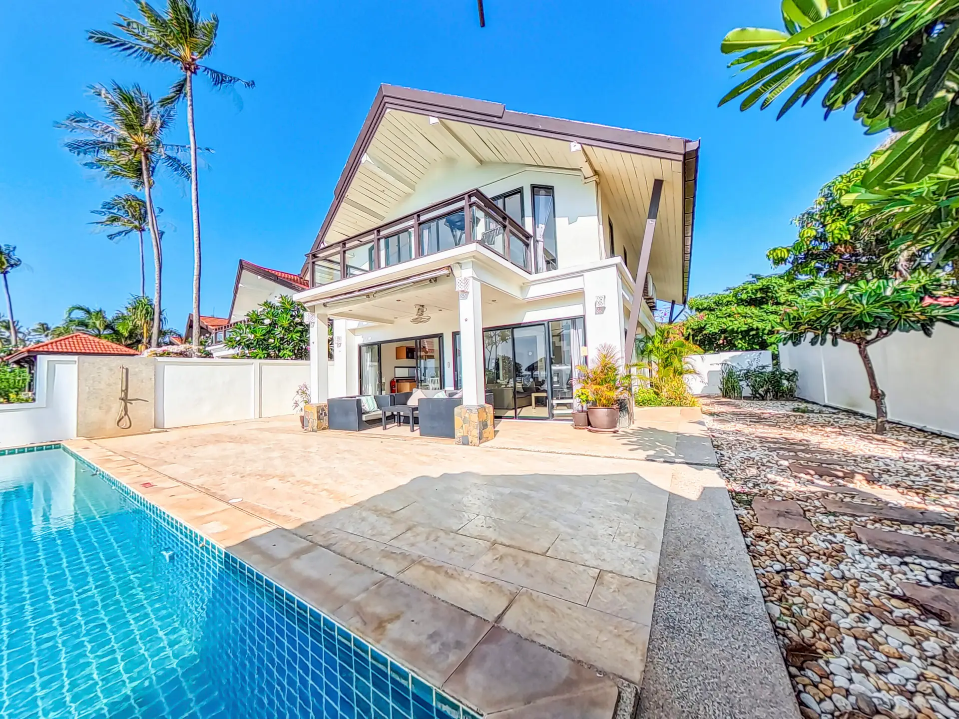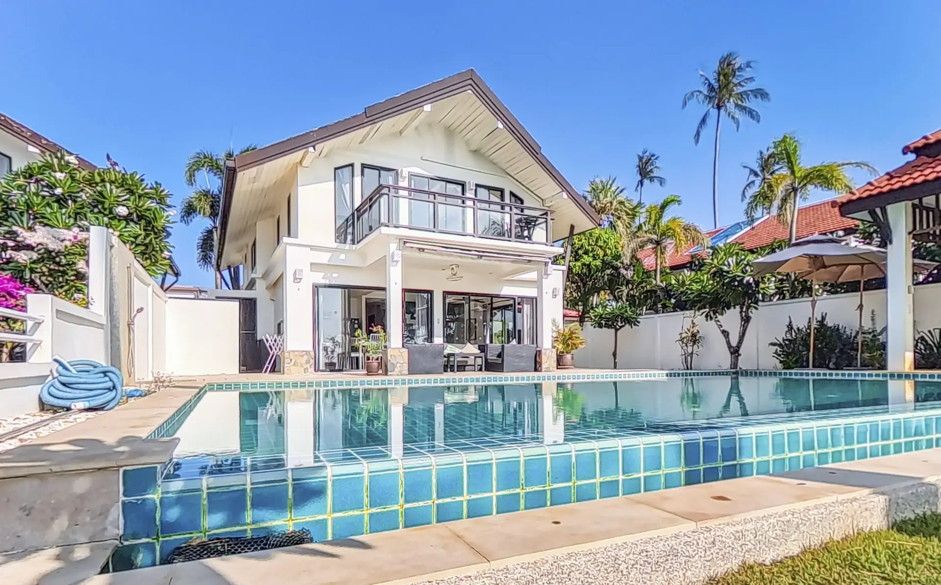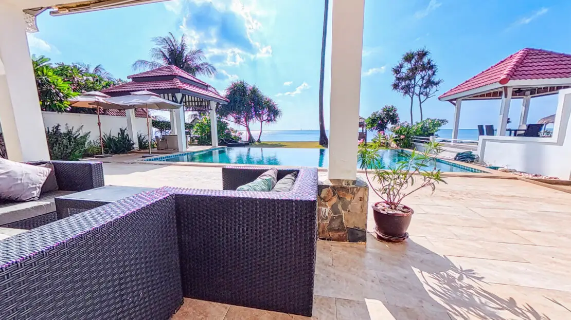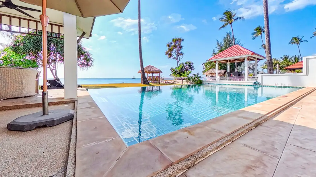 This beautifully appointed villa features a large private pool, a furnished sala, and direct beach access, all set in a prime location close to local shops, restaurants, and family-friendly activities.
