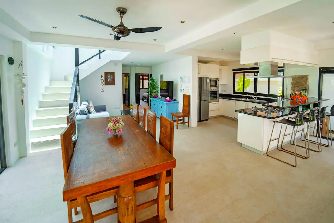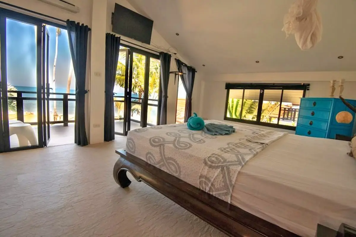 One of the villa’s standout features is the ocean view — enjoy spectacular sunsets over the Andaman Sea each evening from the beachfront terrace or the master bedroom balcony.