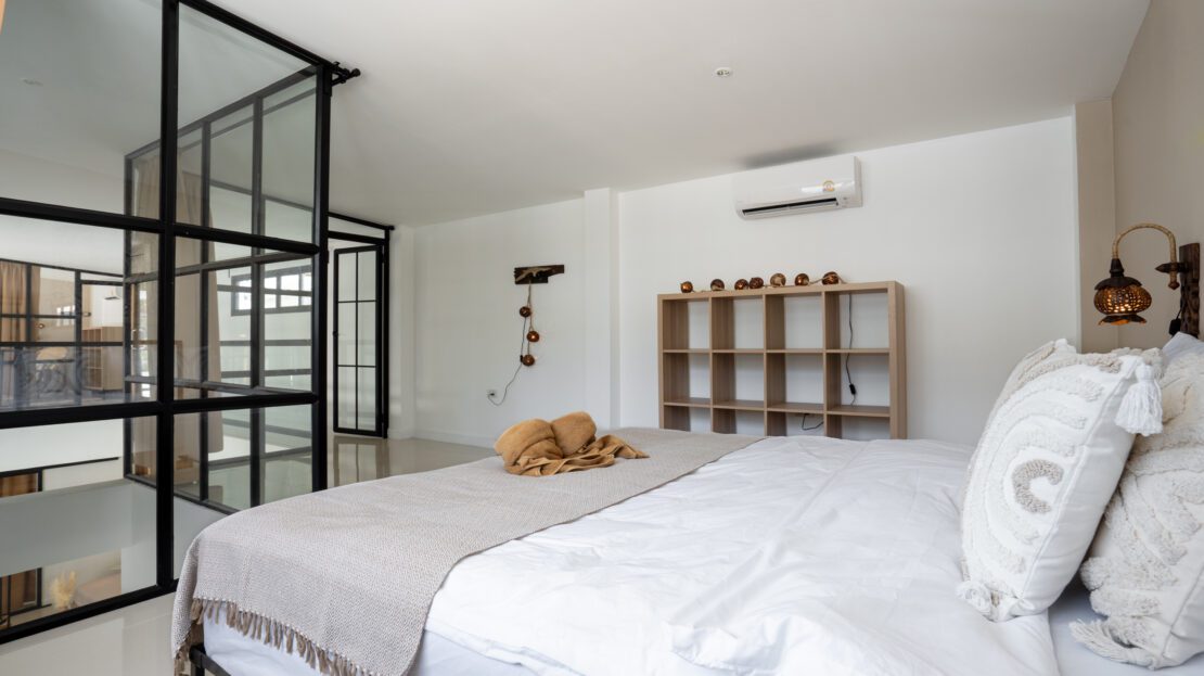 | Bedroom | All 4 bedrooms are air-conditioned with plenty of cupboard space. Comfortable beds in all bedrooms. Master bedroom (King, 180cm): 12 sqm, air conditioned, direct pool access Bedroom 2 (double bed + bunk bed: 150cm + 90cm):6 sqm, air conditioned Bedroom 3 (King, 180cm):12 sqm, air conditioned, direct pool access Bedroom 4 (2 single beds, 90cm, that can be put together): 20 sqm, second floor, air conditioned |