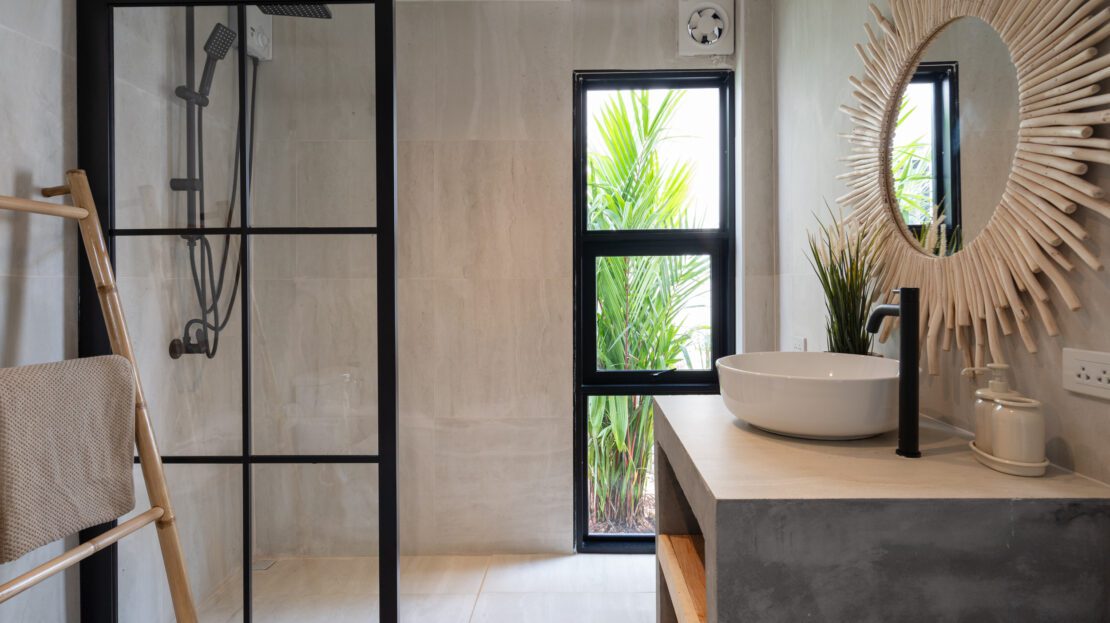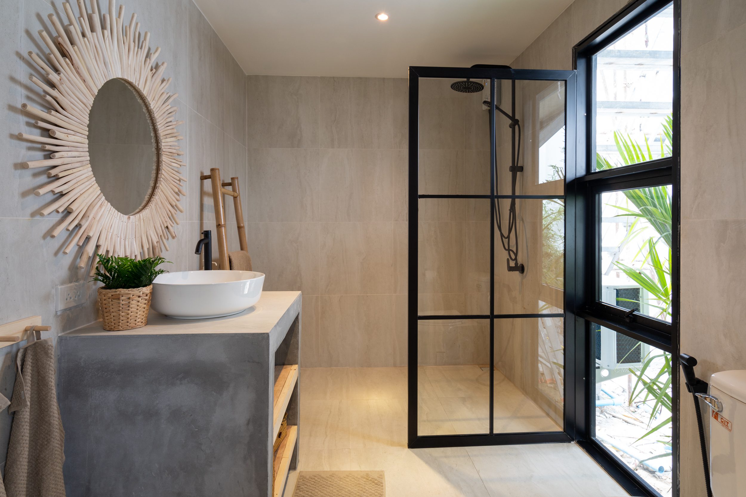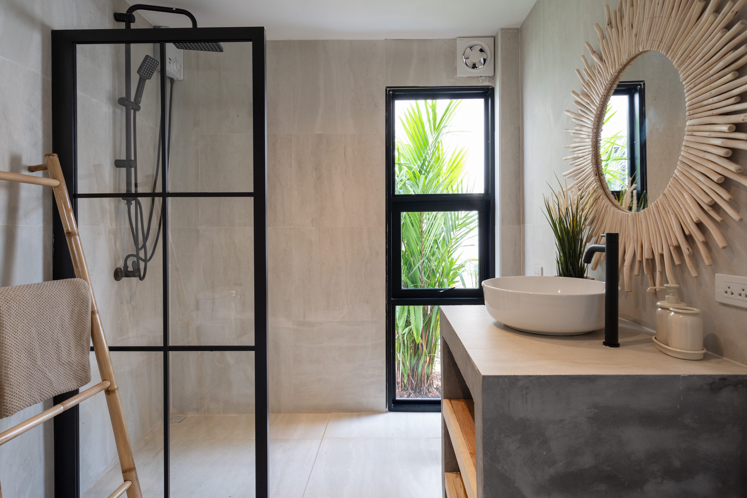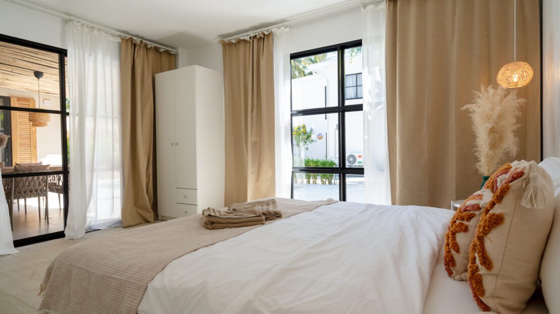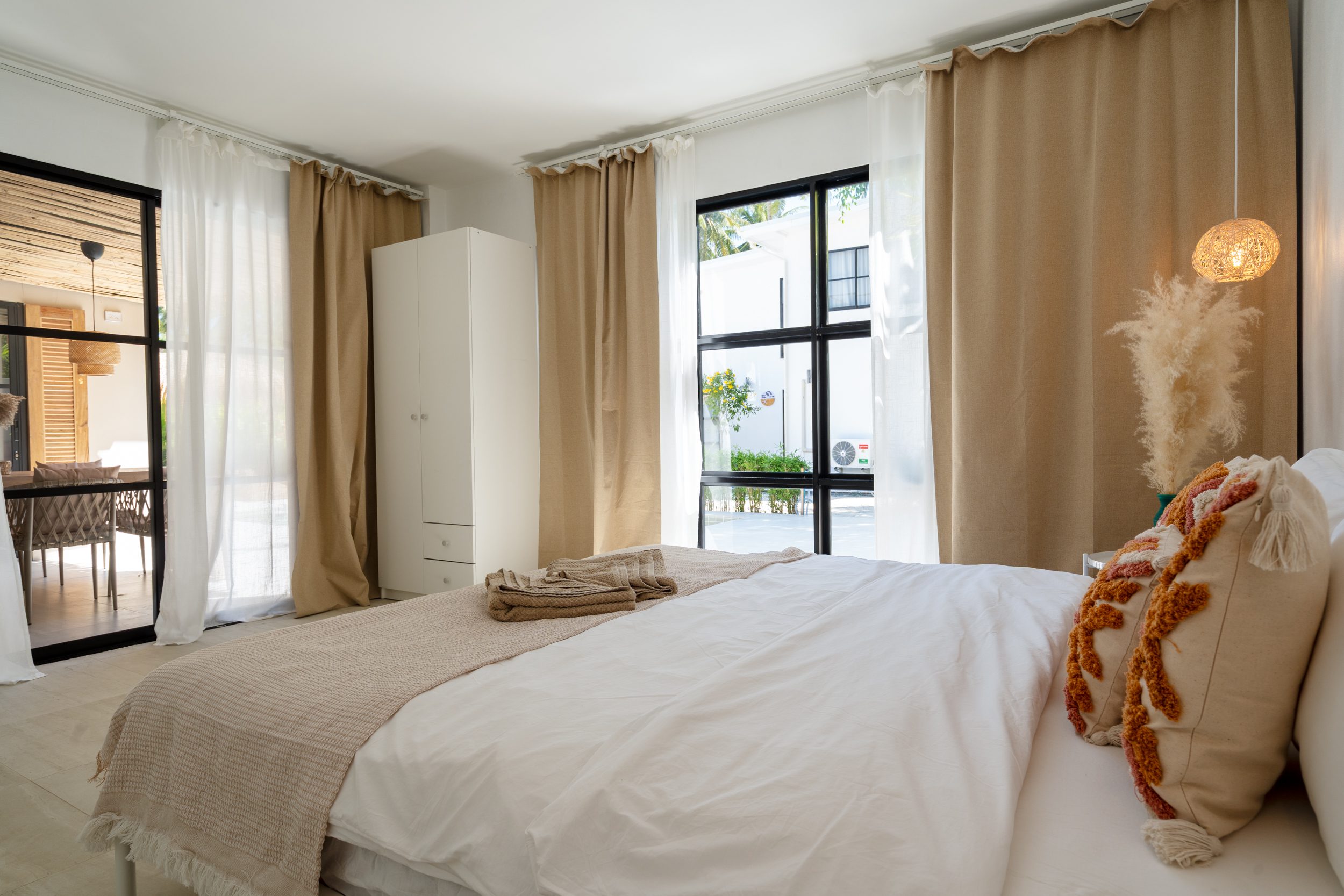 Master bedroom (King, 180cm): 17 sqm, air conditioned, direct pool access