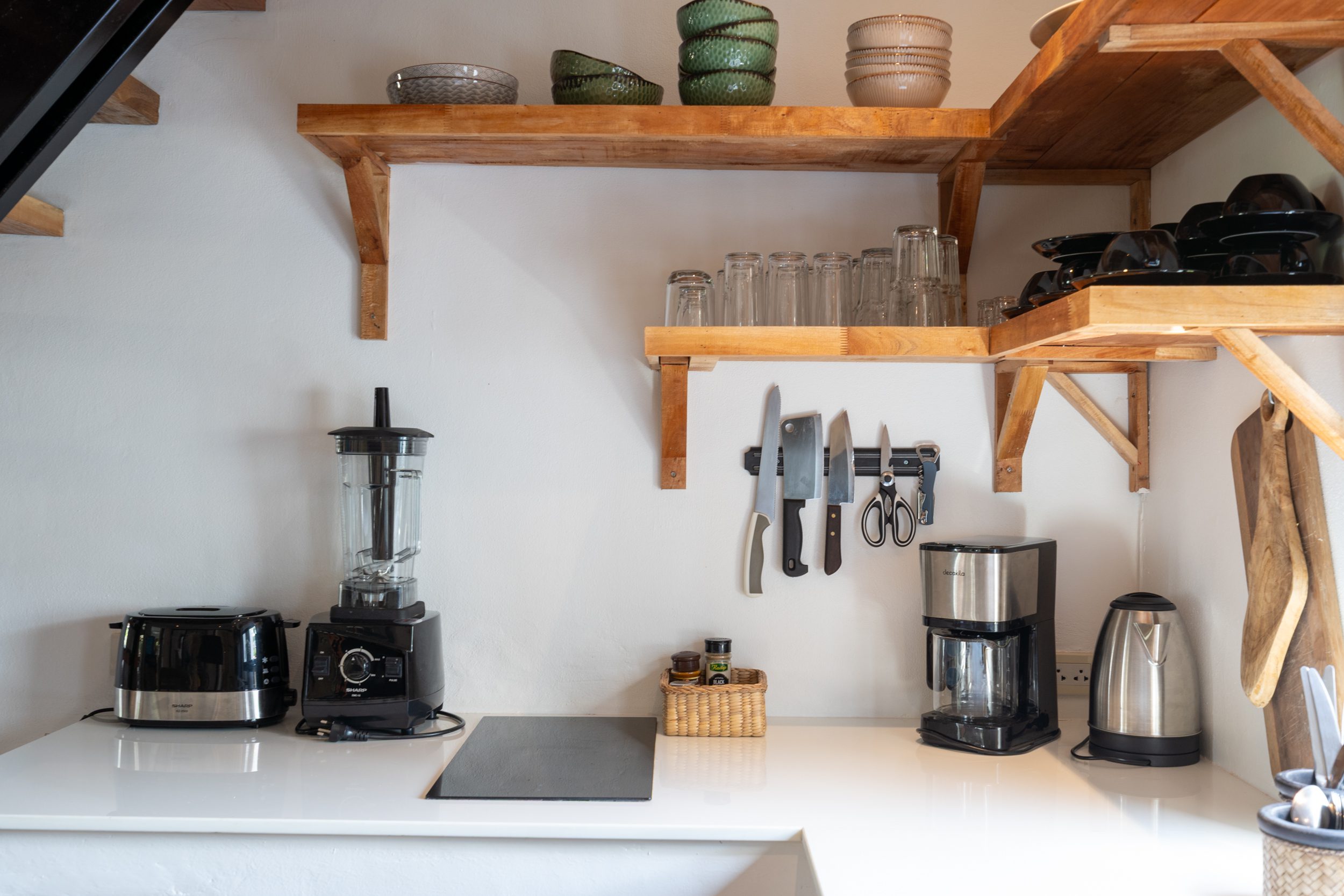 | Kitchen | The kitchen is high ceilinged and fully equipped for all your needs with electric hob, microwave, dishwasher, coffee machine, toaster, kettle, fridge freezer and all accessories that you need to cook a meal or a light snack |