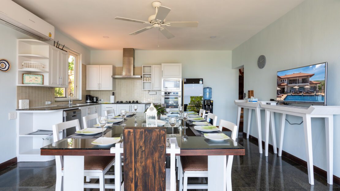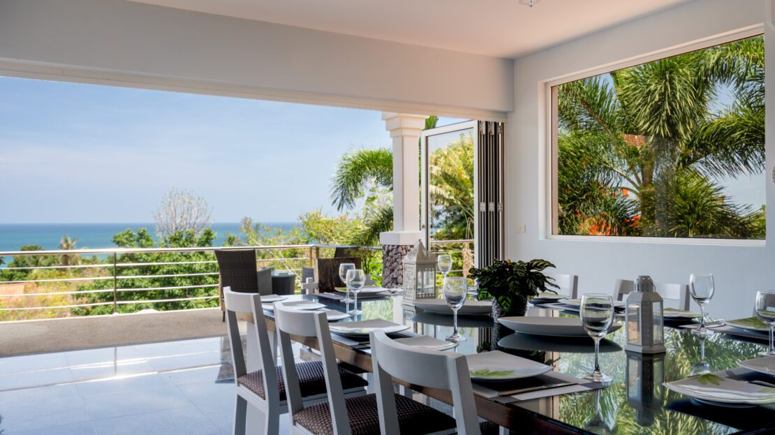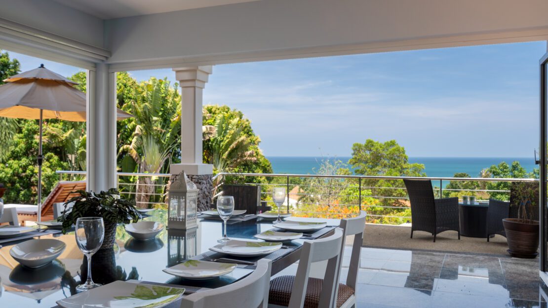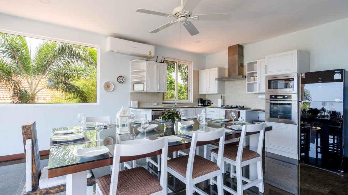 | Dining | For dining you can choose the upper floor indoor dining area with a huge table seating 8, open up the wall to wall french windows to let in the sea breeze, or take the temperature down a few degrees with the built in air conditioning. You can also enjoy eating outside on the terrace by the pool. |