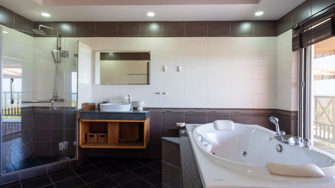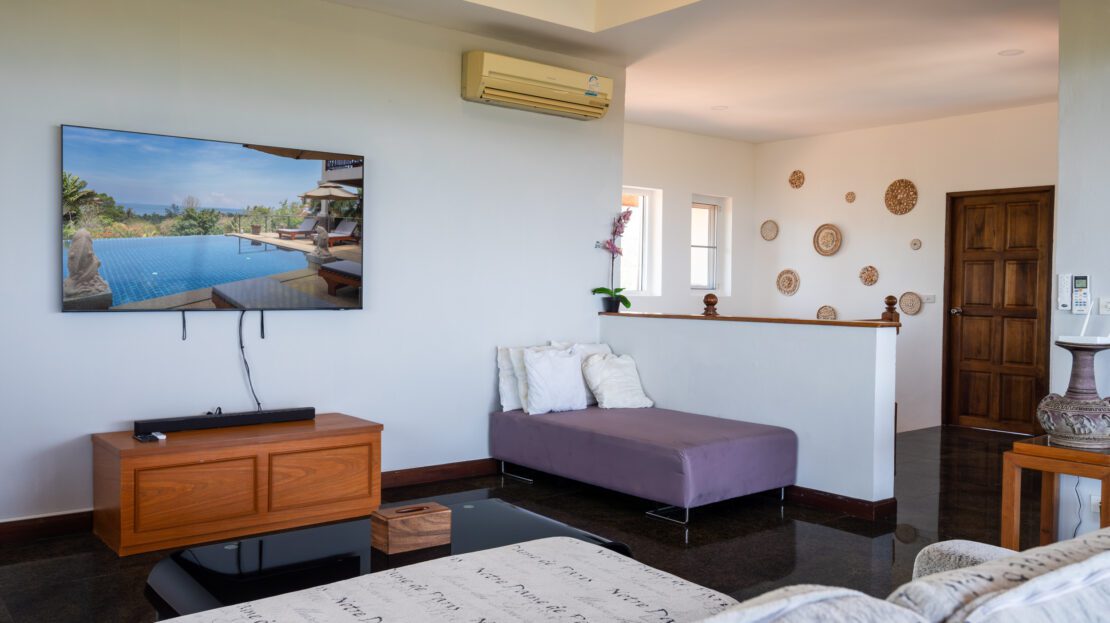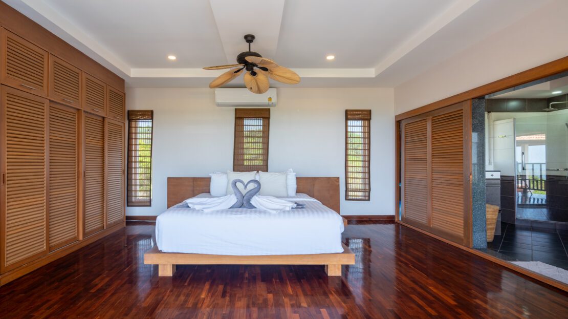| Bedroom | The master bedroom provides complete privacy on the upper floor, enjoying the most spectacular views of the house. It also boasts a huge ensuite bathroom with seaview bathtub and shower. Three other double bedrooms also have ensuite bathrooms, and are on the ground level with direct pool access. All bedrooms have air conditioning and large wardrobe / cupboard space. |