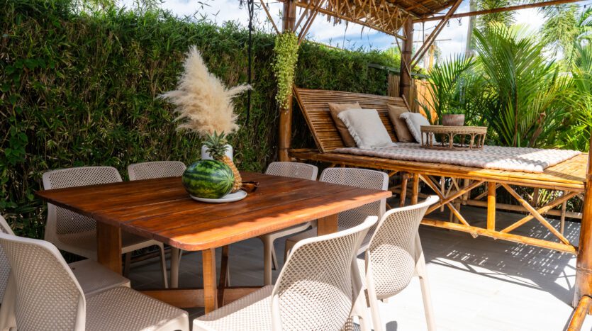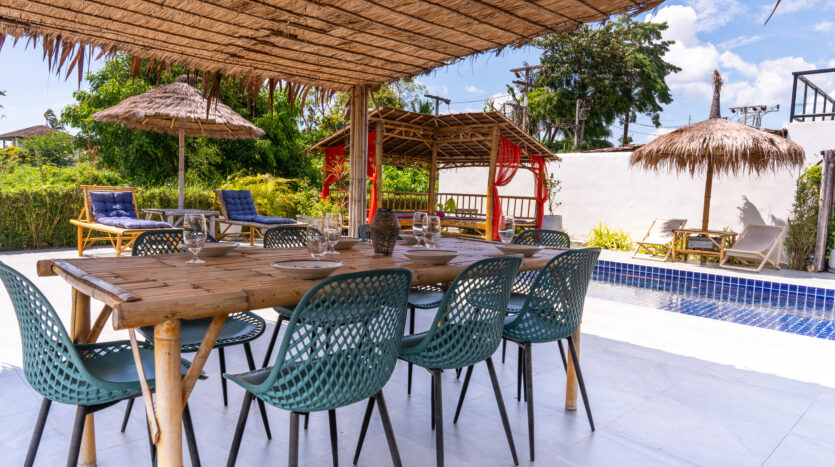 | Dining | Dining with a beachview, either in the living room or in the shaded pavilion next to the beach |