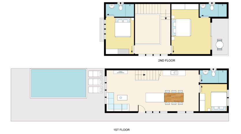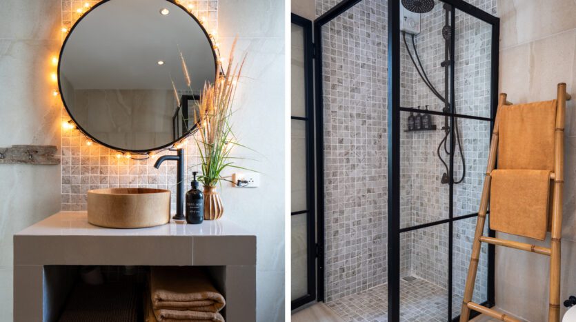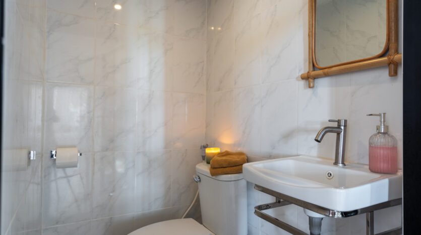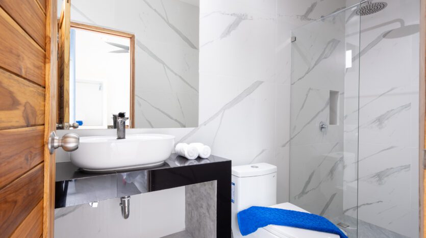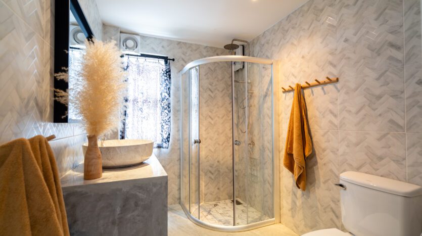 | Bathroom | Both bathrooms are ensuite with high quality bathroom fittings: toilet, sink + shower. Guest toilet connected to living area |
